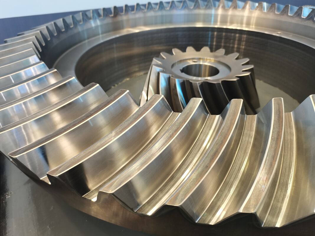 Ассортимент нашей продукции обширен: прямозубые конические шестерни охватывают диапазон модуля от 12 до 40 мм и диапазон диаметров от 200 мм до 1700 мм. Для спирально-конических шестерен диапазон модуля составляет от 2 до 45 мм, а диапазон диаметров еще шире, достигая от 50 мм до 2300 мм. Эти высококачественные продукты широко используются в различных областях, таких как военная промышленность, высокоскоростные железные дороги, судостроение, нефтяная промышленность, химическая промышленность, цементная промышленность, металлургия, горнодобывающая промышленность и строительная техника.